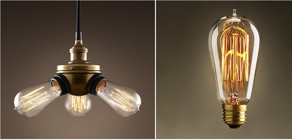 В качестве элемента источника освещения применяется классическая ретро лампочка накаливания Эдисона. Использование лампочек такого типа и формы придает ощущение оригинальности и всегда будет радовать любителей стиля винтаж, индастиал или лофт.