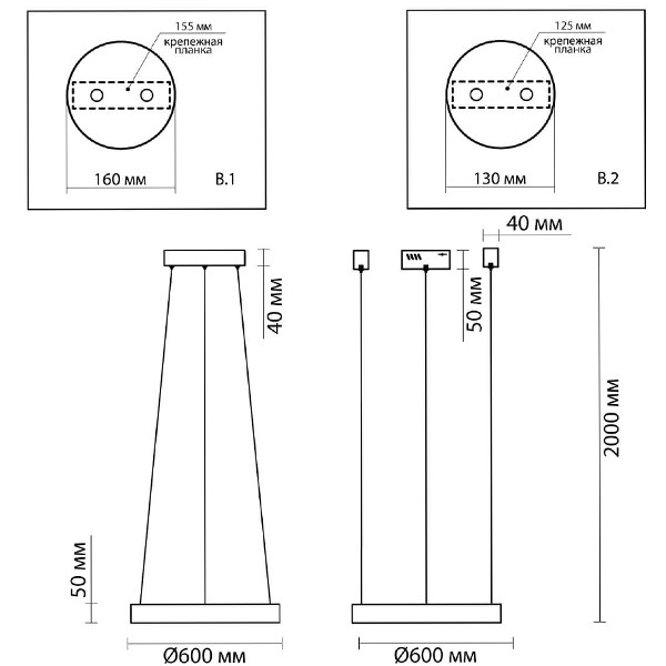 К светильнику идут два вида креплений.