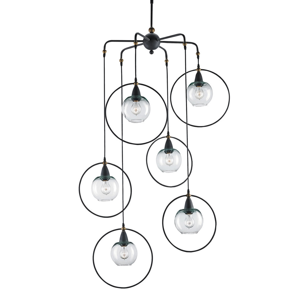Подвесной светильник с асимметричным каскадом из прозрачных круглых плафонов Hanging Cascade Balls
