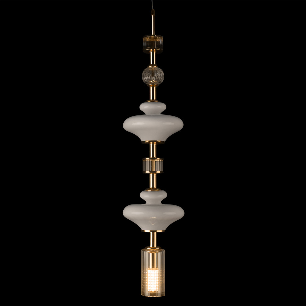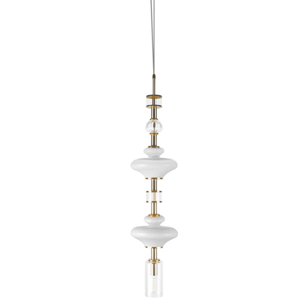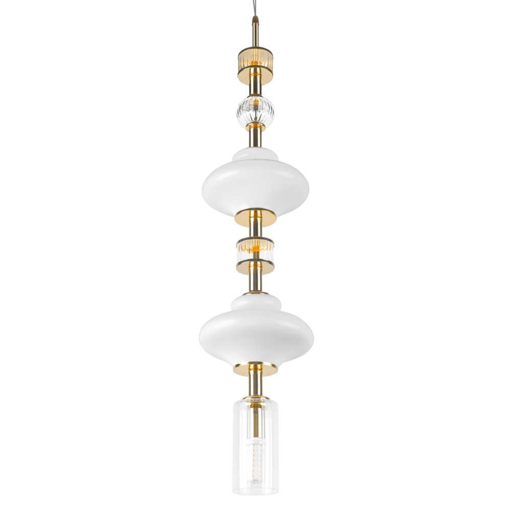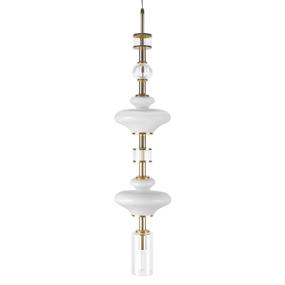 Подвесной светильник с белыми фигурными стеклянными элементами и бронзовыми вставками Высота 100 см Gabriel Scott Luna