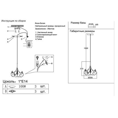 Высота цепи/троса, см — 119, Высота с цепью/тросом, см — 150