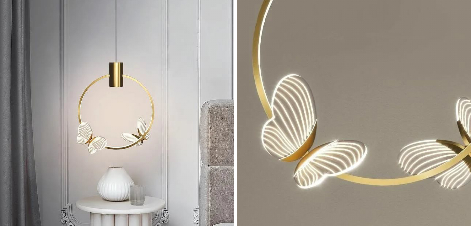 Подвесной светильник с декоративными светящимися бабочками Butterfly Double disk F