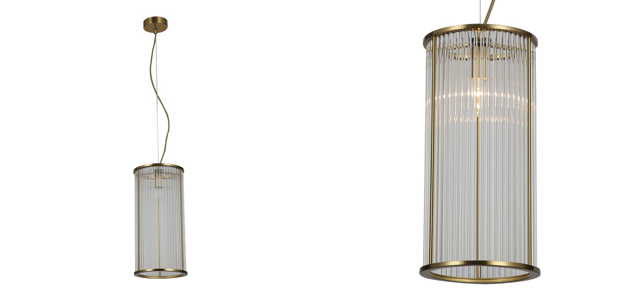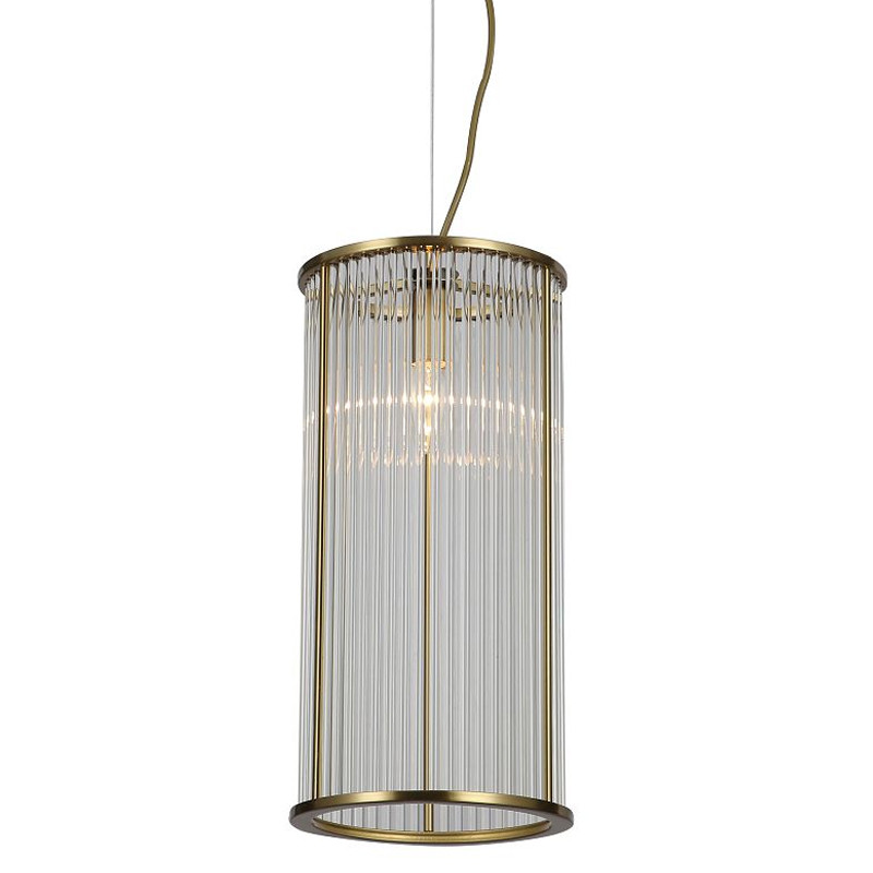 Каркас медного цвета, плафон из прозрачных стеклянных трубочек.