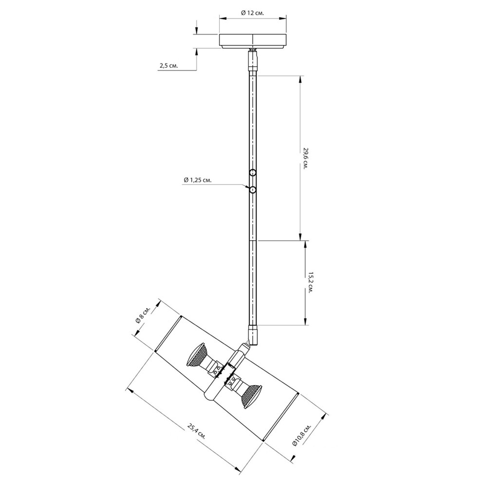 Размер: 57,3 см. x 12 см. x 46,3 см, Размер пластины: Ø 12 см. х 2,5 см, Размер абажура: 25,4 см. х Ø 10,8 см – 8 см.