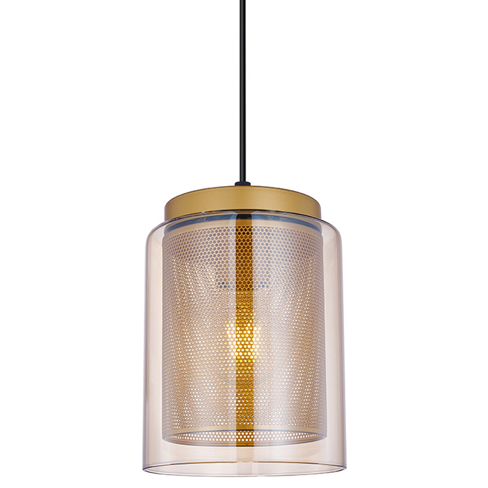 Подвесной светильник с сетчатым металлическим плафоном цилиндрической формы золотой Metal Mesh
