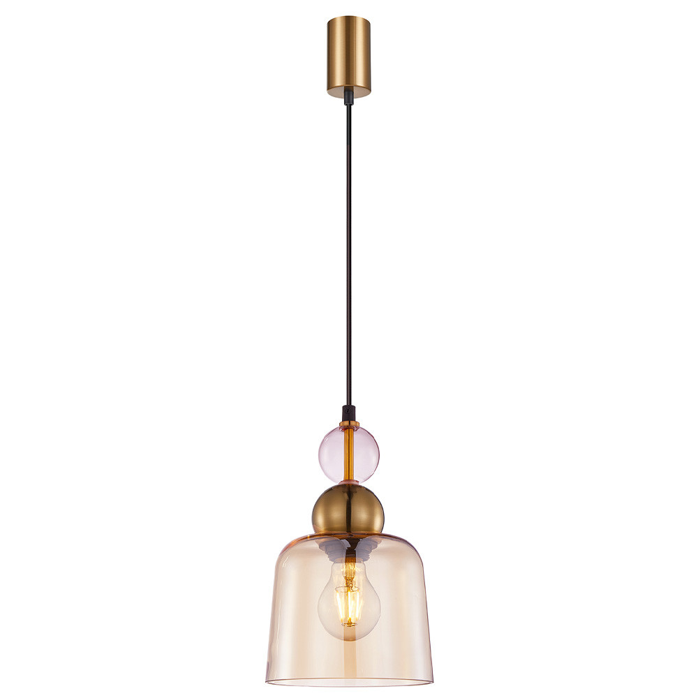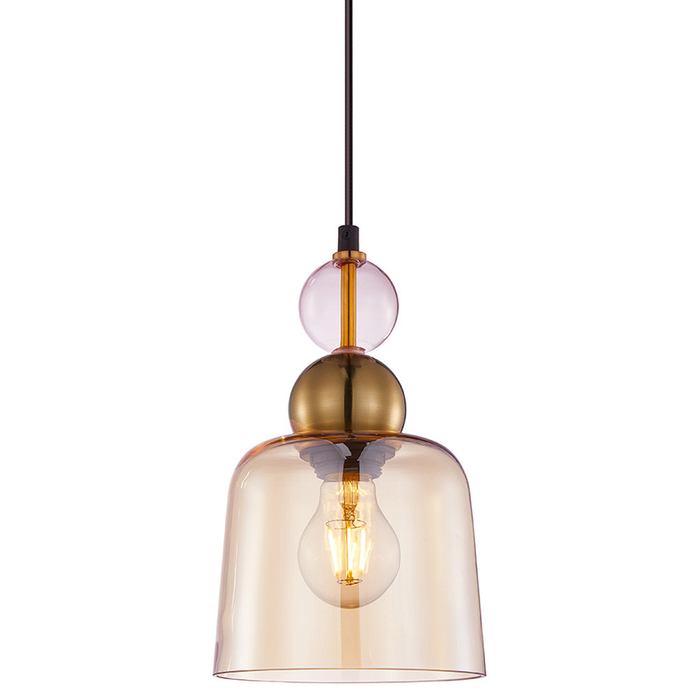 Подвесной светильник со стеклянным плафоном янтарного цвета Prestige