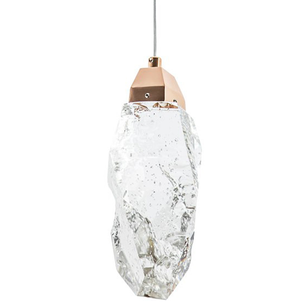 Прозрачный акрил, используемый для изготовления светильника, отражает и преломляет свет, создавая потрясающие световые эффекты. Золотистый металлический каркас, обрамляющий светильник, придает ему элегантность и изысканность.