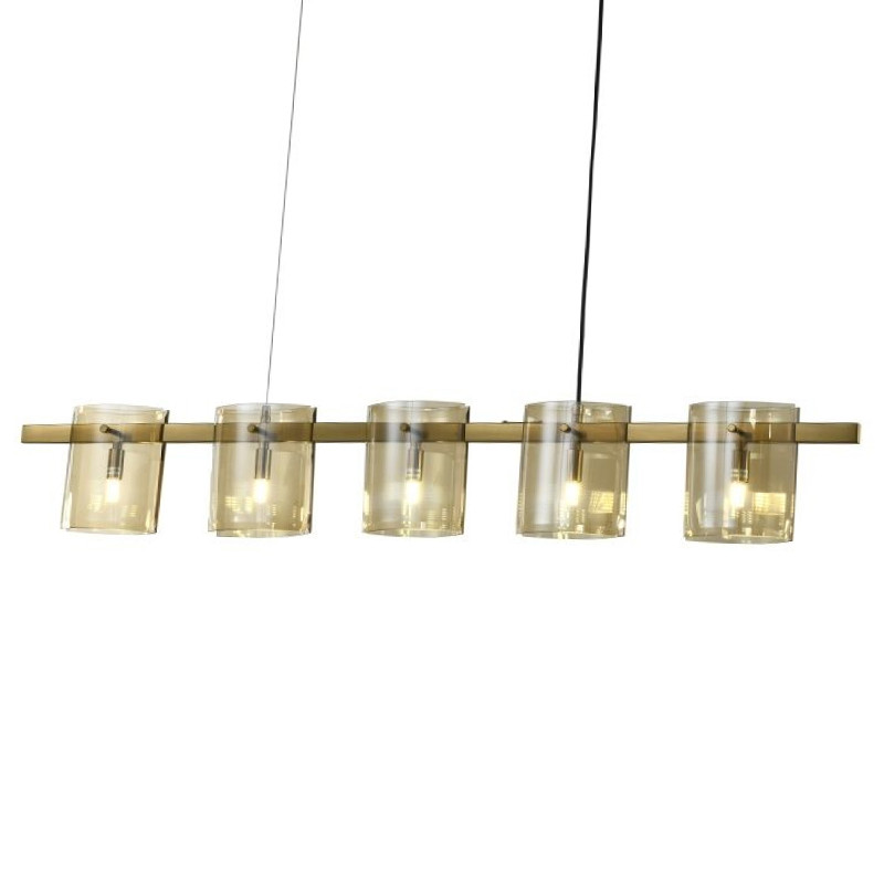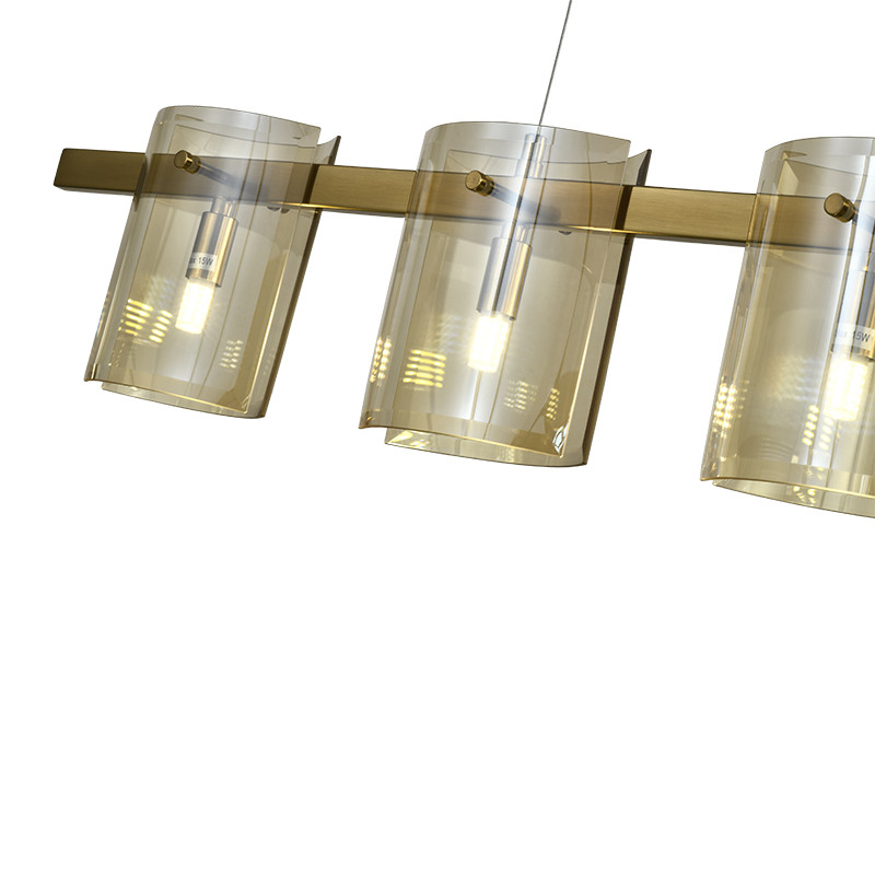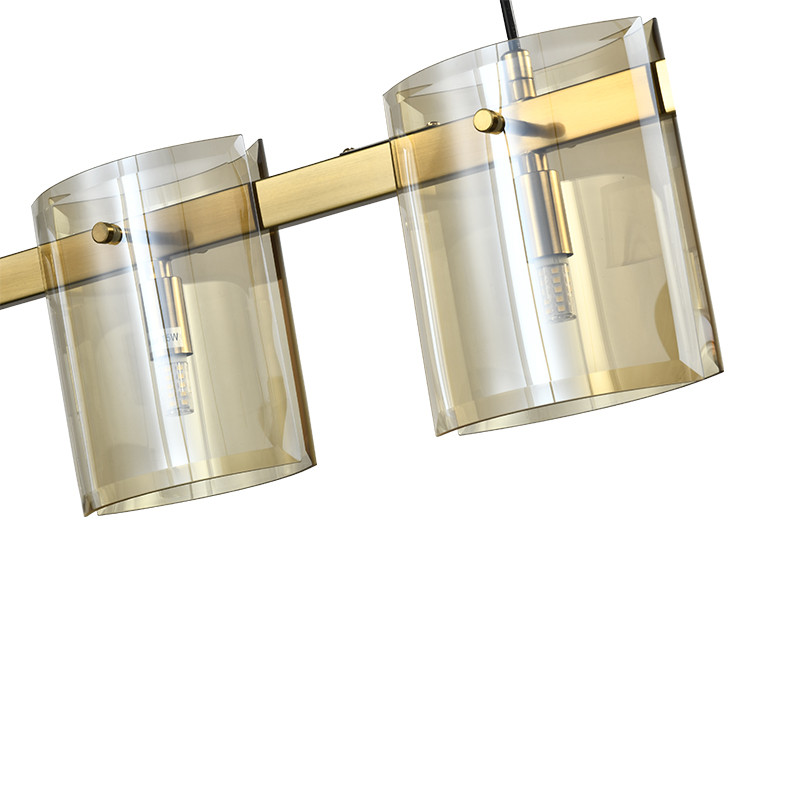 Подвесной светильник светодиодный с 5-ю цилиндрическими плафонами коньячного цвета из стекла и стали Andrea Сhandelier Сognac