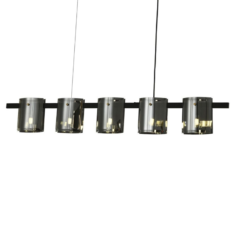 Подвесной светильник светодиодный с 5-ю цилиндрическими плафонами светло-серого цвета из стекла и стали Andrea Сhandelier Grey