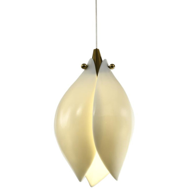 Подвесной светильник светодиодный с белым плафоном в виде цветка из фарфора и стали Flower Light Gold