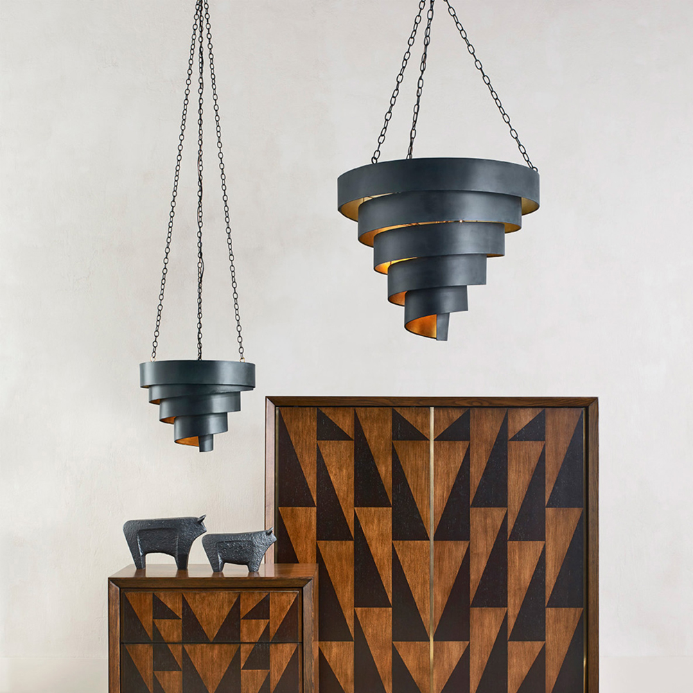 Подвесной светильник в форме спирали черный с золотой внутренней отделкой Warm Glow