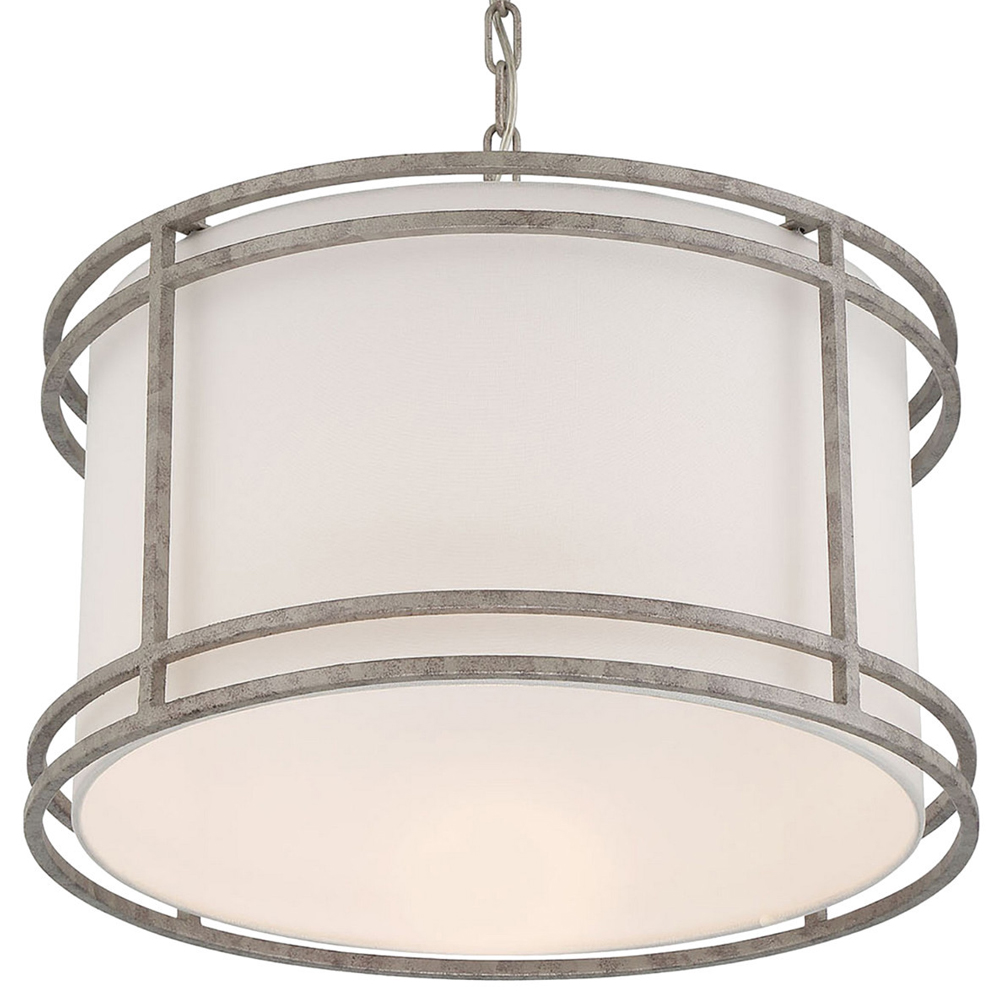 Подвесной светильник в виде барабана с тканевым абажуром и металлическим каркасом Warm Glow
