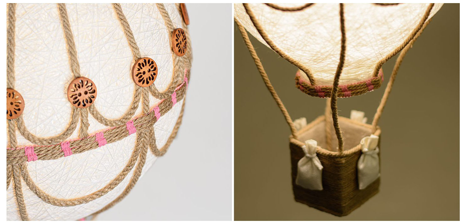 Главной особенностью этого светильника является его оригинальная форма, напоминающая яркий воздушный шар, парящий в воздухе. Плафон выполнен из высококачественных материалов, имитирующих легкую ткань, и украшен разноцветными полосками.