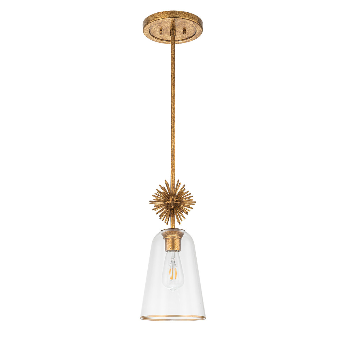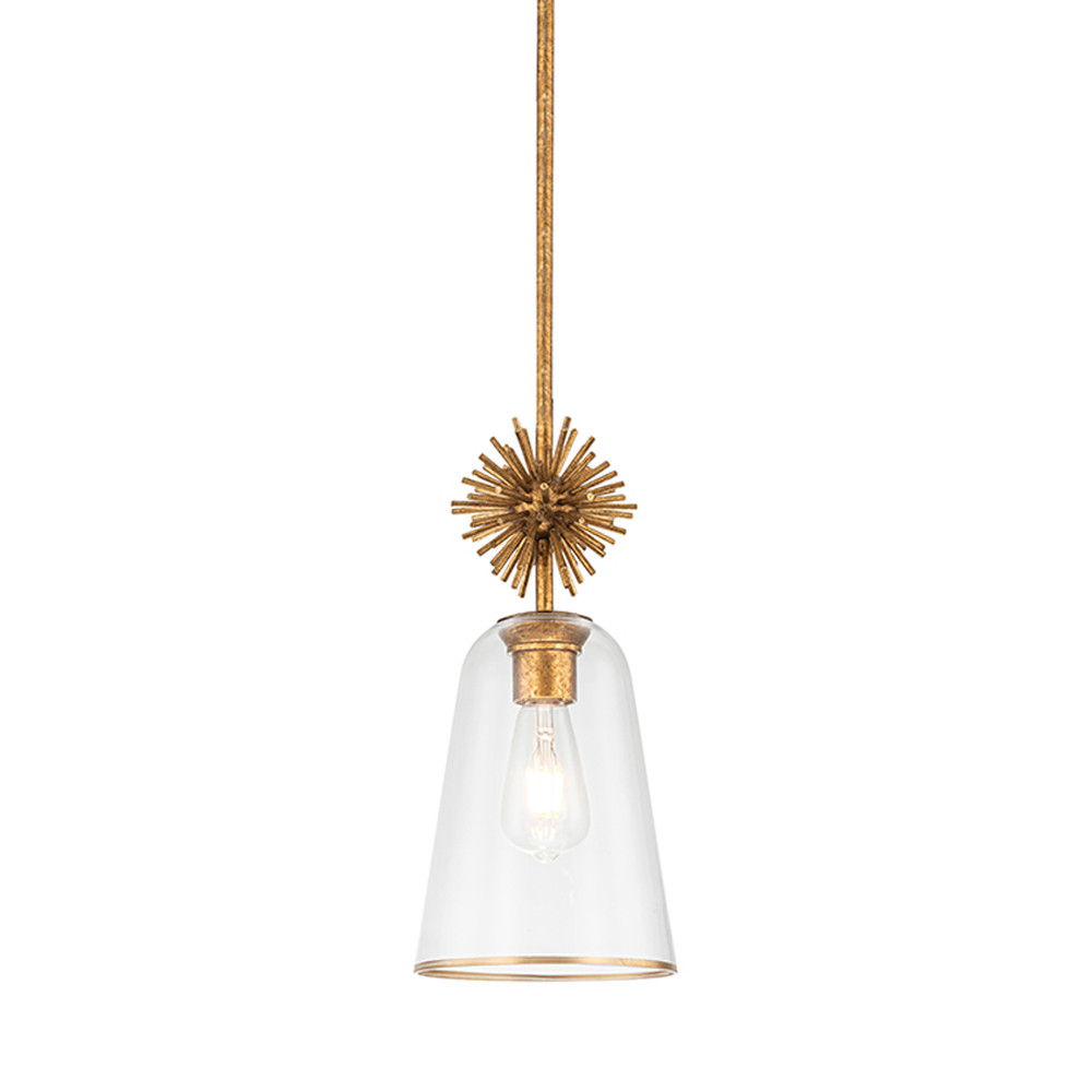 Подвесной светильник золотого цвета с колоколообразным стеклянным плафоном и декоративным элементом Elstead Lighting