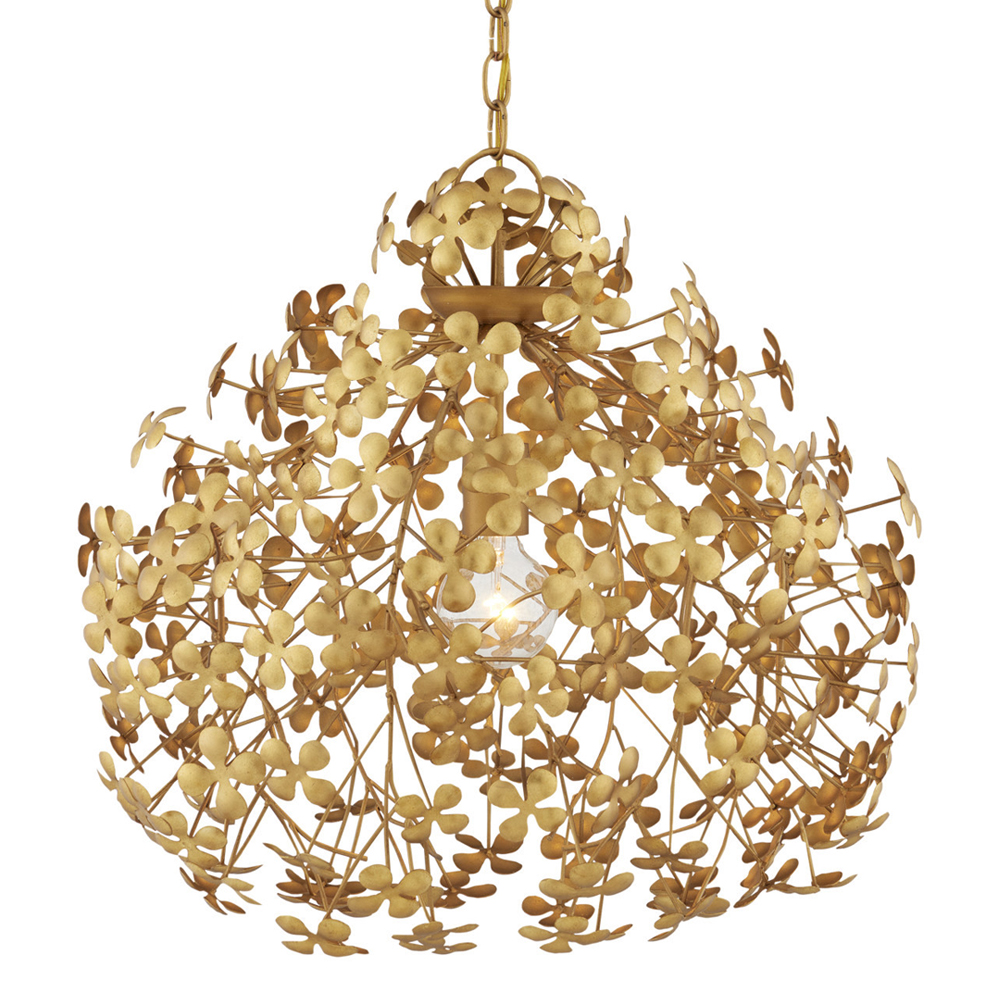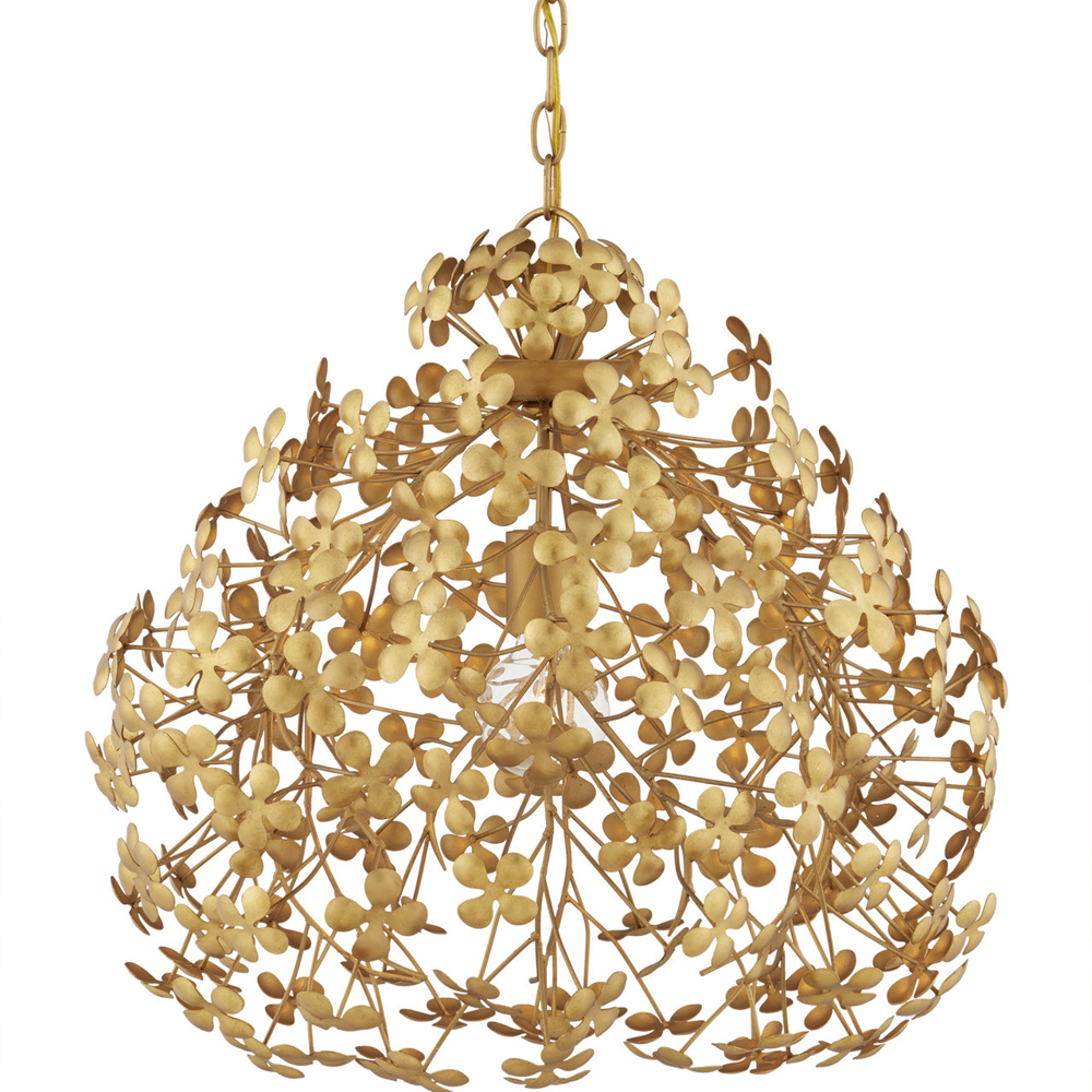 Подвесной светильник золотой с декором в виде лепестков клевера Hanging Clover