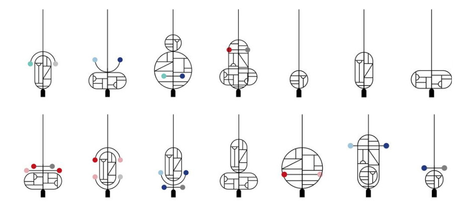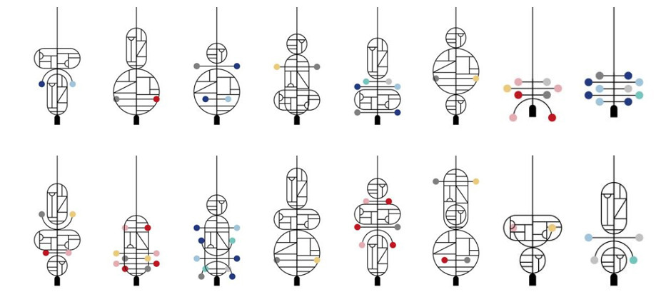 Goula Figuera - студия дизайна из Барселоны. Подвесные светильники серии Lines & Dots являются результатом свободного сочетания объемов, форм и материалов. Эта студийная работа украсит Ваш современный актуальный интерьер. Первый продукт коллекции называется «линии и точки». Чтобы создать его, дизайнеры следовали нетрадиционному процессу проектирования, начиная с тысяч линий и точек, нарисованных на бумаге. Затем была выбрана серия из восьми силуэтов. Каждый из восьми различных модулей может быть объединен с помощью кабеля в единую композицию. Модели оснащены диммируемыми светодиодными лампами, которые дают теплый свет.