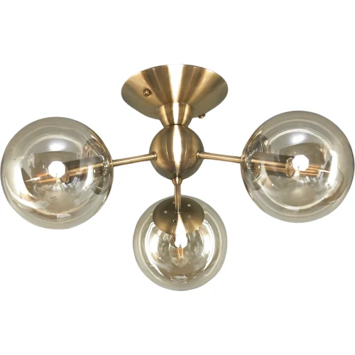 Каркас из темной бронзы светильника сделан из металлических трубок и соединительных элементов. Наша компания Loft Concept предлагает два цветовых решения: черный и золотой цвета. Плафоны сферической формы сделаны из борсиликатного стекла и имеют три цветовых решения: прозрачный, затемненный и непрозрачный матовый белый цвета.