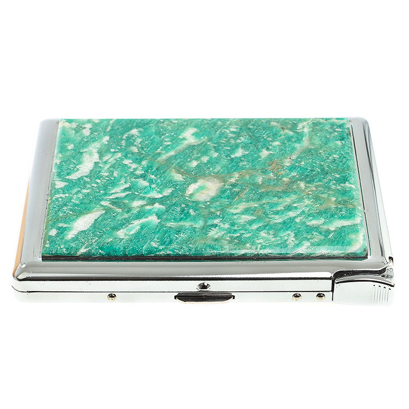 Портсигар с газовой зажигалкой из натурального камня Амазонит Stone Cigarettes Cases