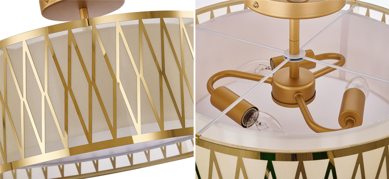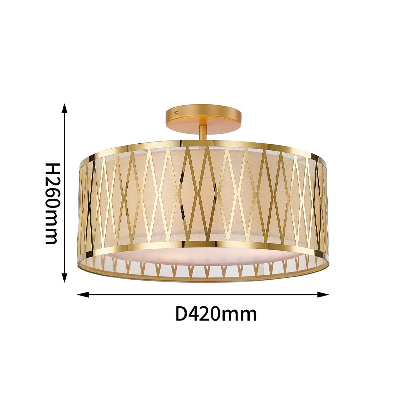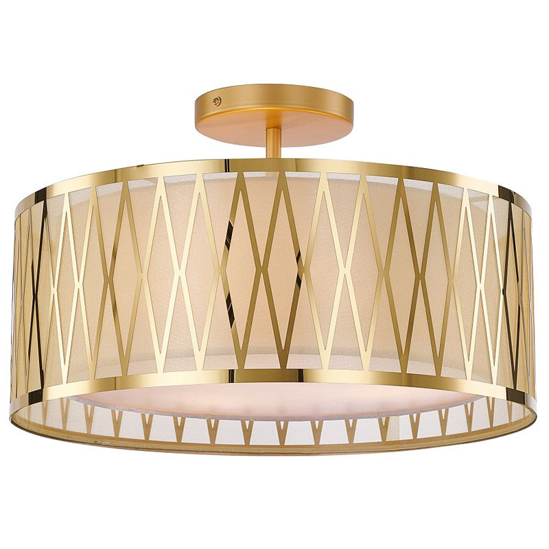 Потолочный светильник с золотым каркасом и тканевым абажуром Lustery