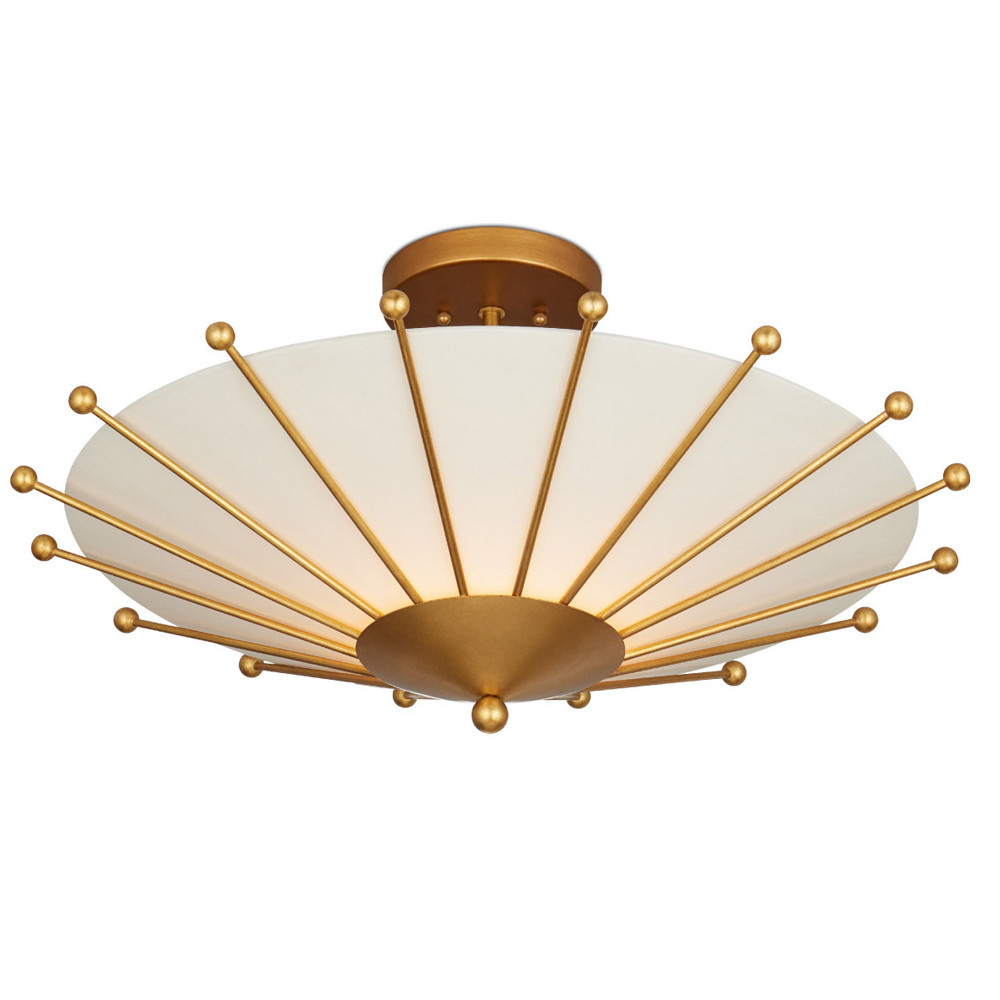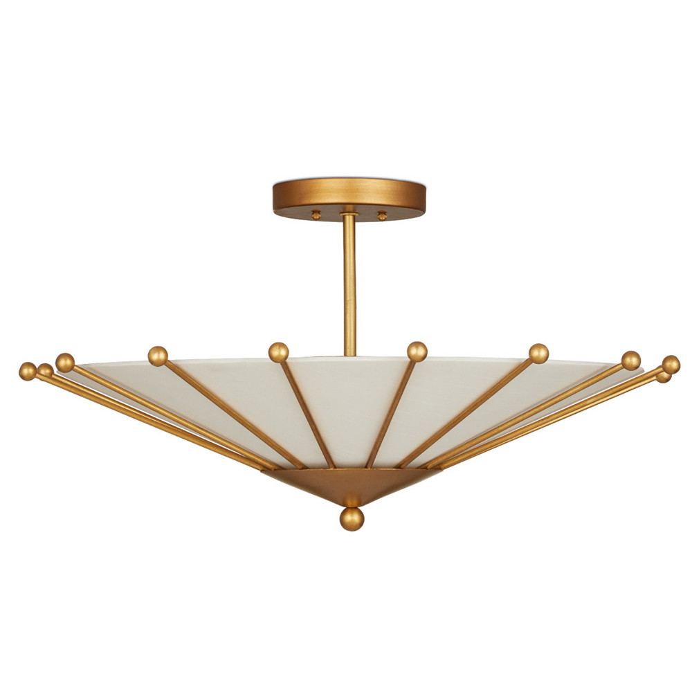Потолочный светильник в форме конуса с каркасом золотого цвета и тканевым абажуром Inspiration in Light