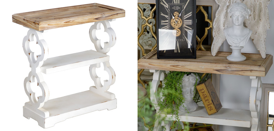И так как она оснащена двумя полками, можно купить приставную консоль Aged Wood для хранения книг, аксессуаров или декоративных элементов.