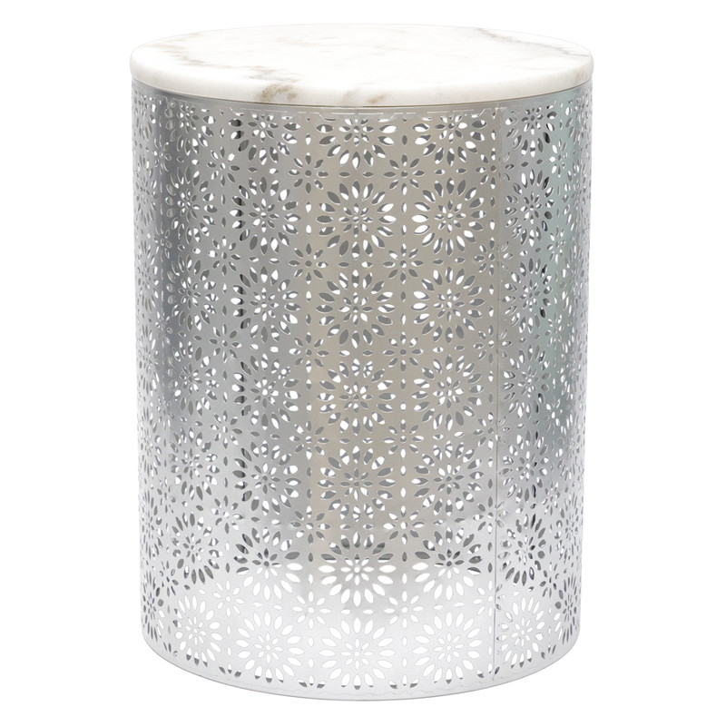 Купить приставной Стол Artesia Table с белым мрамором – это выбрать слияние прочного металла и благородного мрамора.