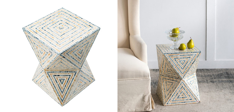 Купить приставной Стол Bone Inlay с мозаичным рисунком из раковин устриц в светлых тонах – можно в роли дополнительной поверхности для еды, подставки для напитков, для размещения книг, лампы, цветов или декоративных предметов.