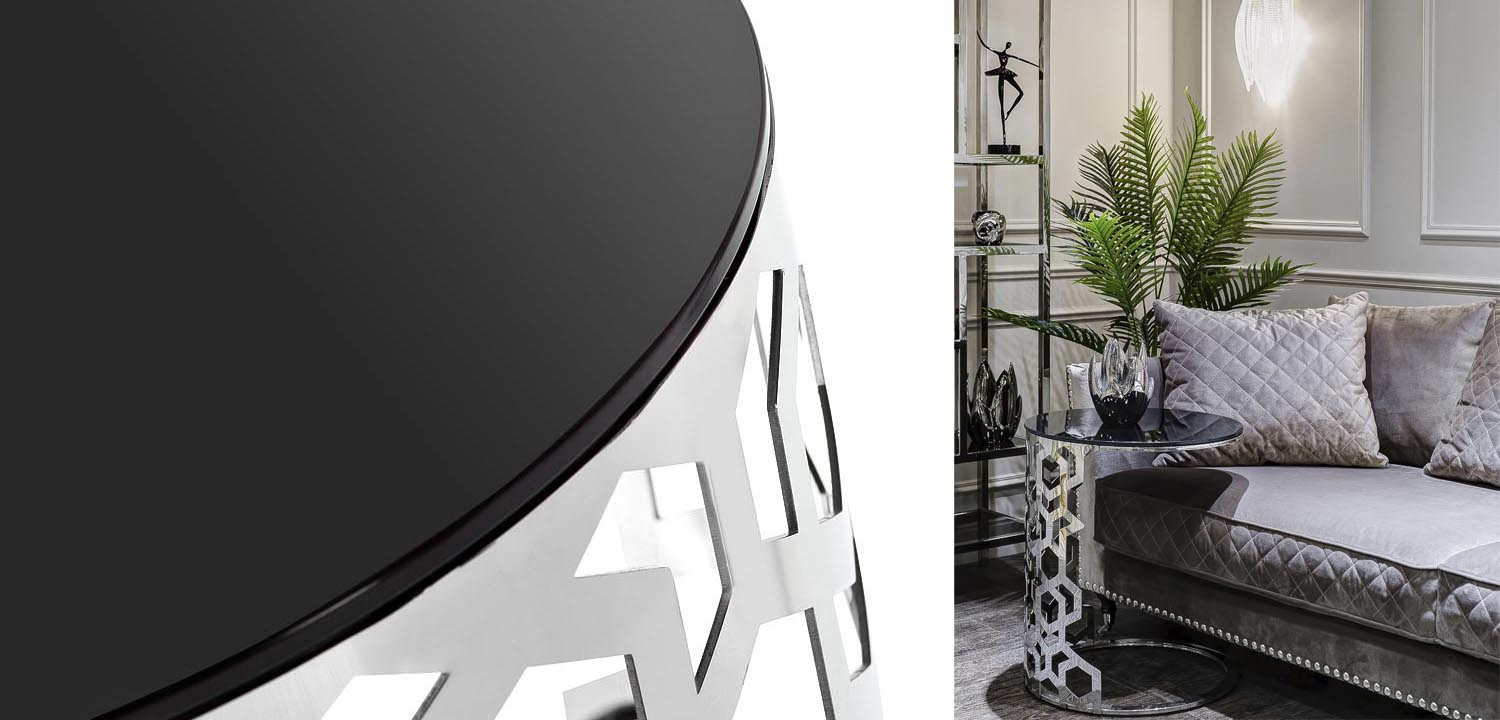 Купить приставной стол Yen Geometry Side Table silver 60 – это остановиться на сочетании стекла и нержавеющей стали.