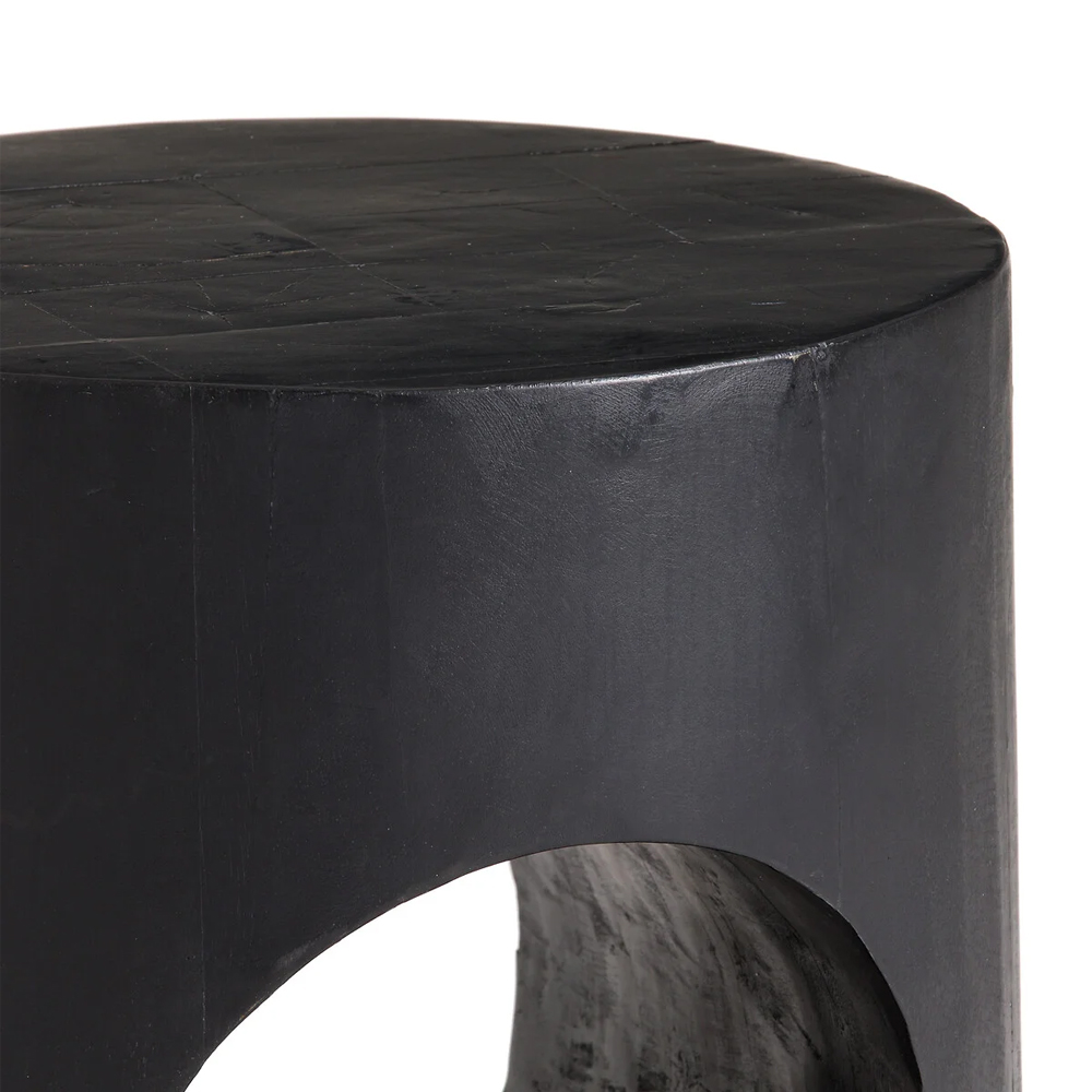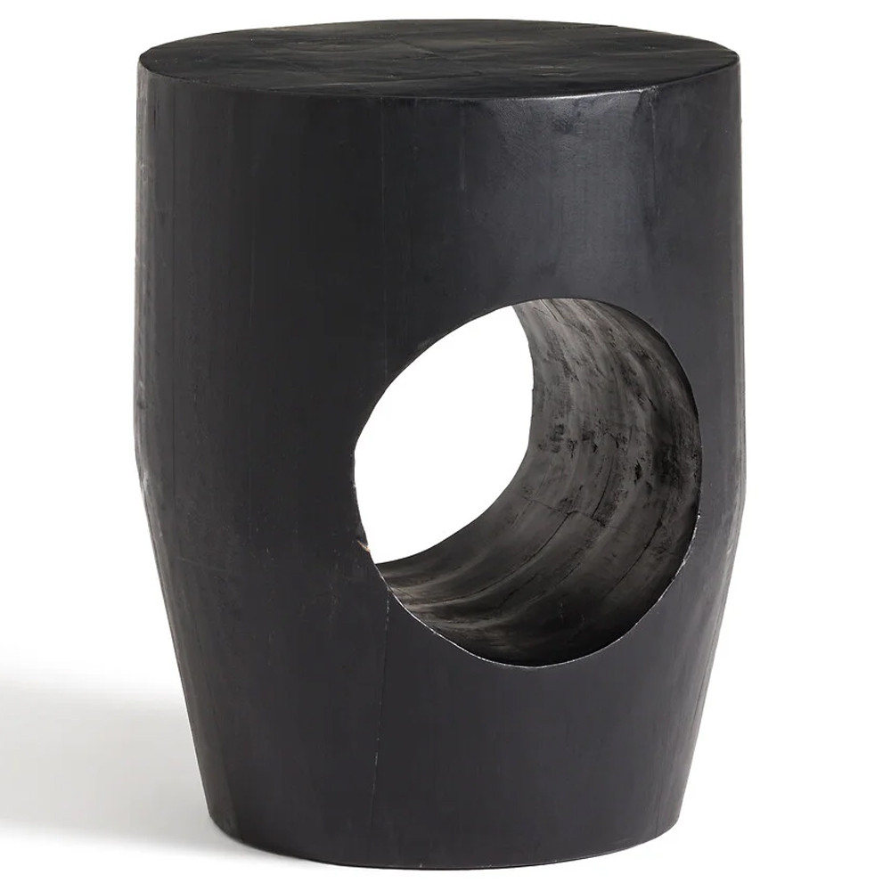 Материалом, использованным для создания этого столика, является массив дерева манго. Этот материал придает столику естественность и органичность. Окрашенный нитроцеллюлозным лаком, это дерево получает глубокий и насыщенный черный цвет, который придает столику элегантность.