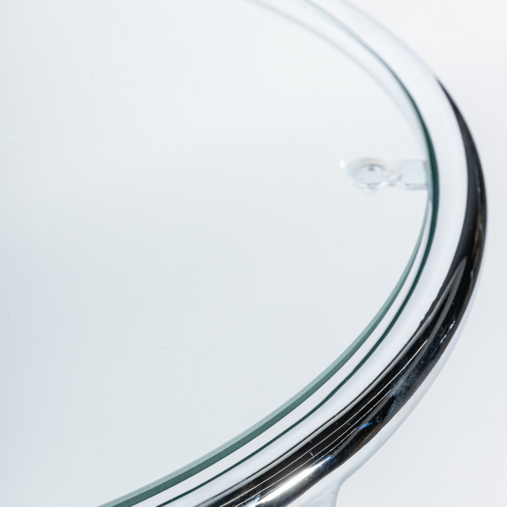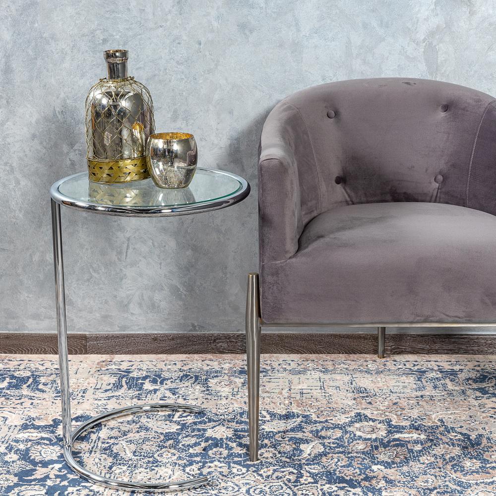 Купить приставной столик на серебристом основании с столешницей из стекла Noir – это выбрать модель из прозрачного закаленного стекла с серебром.