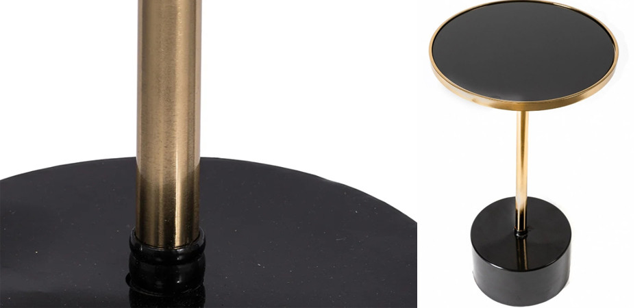 Single-Legged Table Round выполнен в современном стиле арт-деко с использованием качественных материалов: металла и стекла.