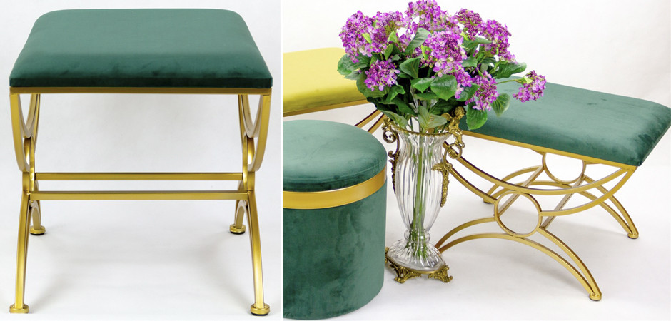 Металлическая основа пуфа, эффектно сверкающая и очаровательная, создает образ прочности и элегантности. Ее формы, линии и цвета – словно играют в сочетании с искусством и смелостью стиля Art Deco.