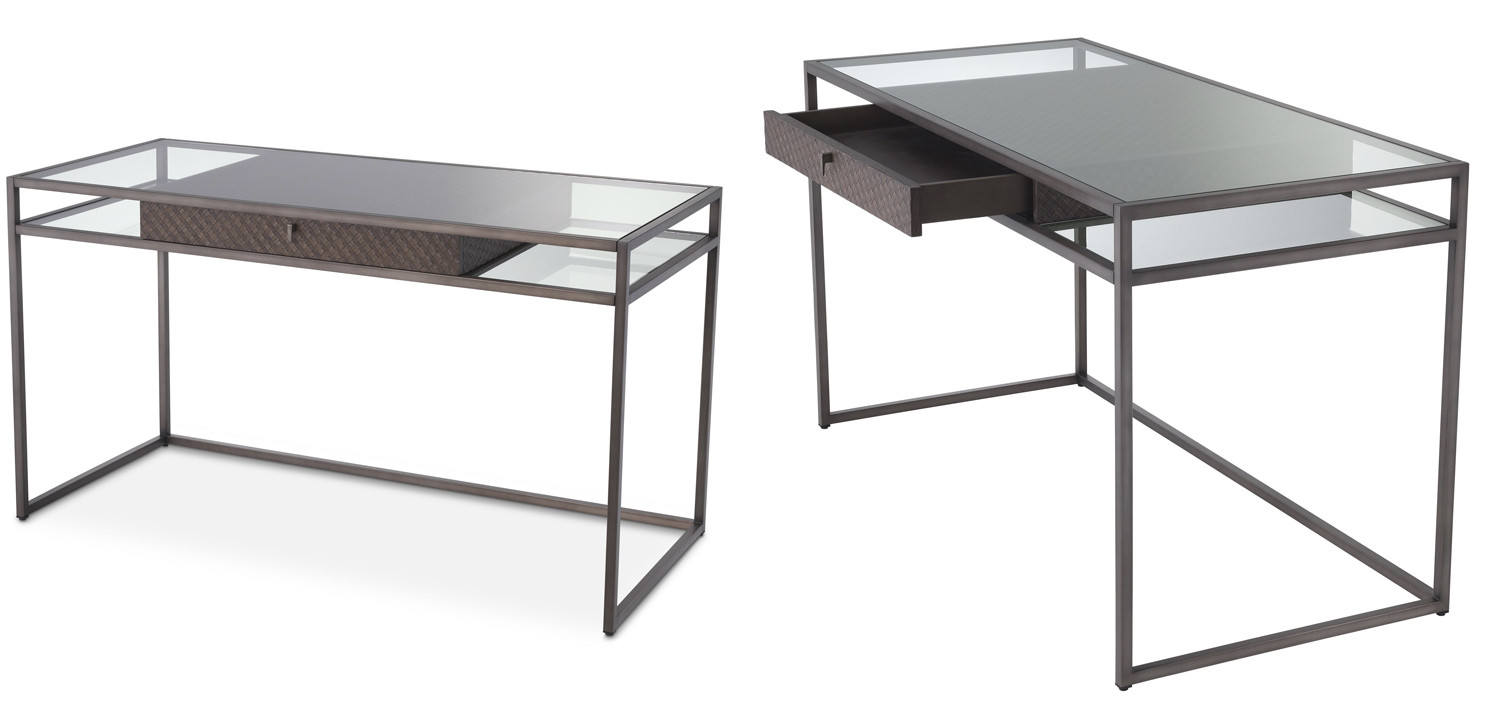 Стильный письменный стол предлагает просторную столешницу, на которой вы можете разместить компьютер, книги и другие рабочие материалы.