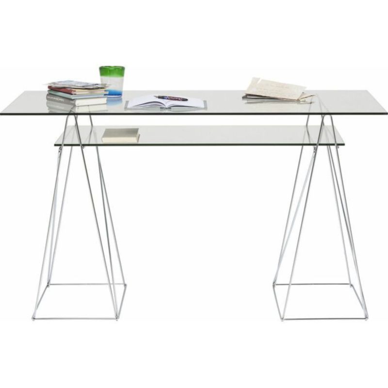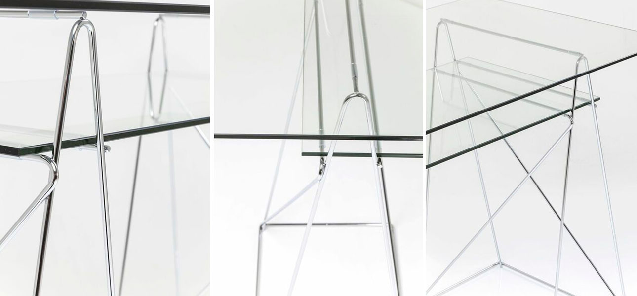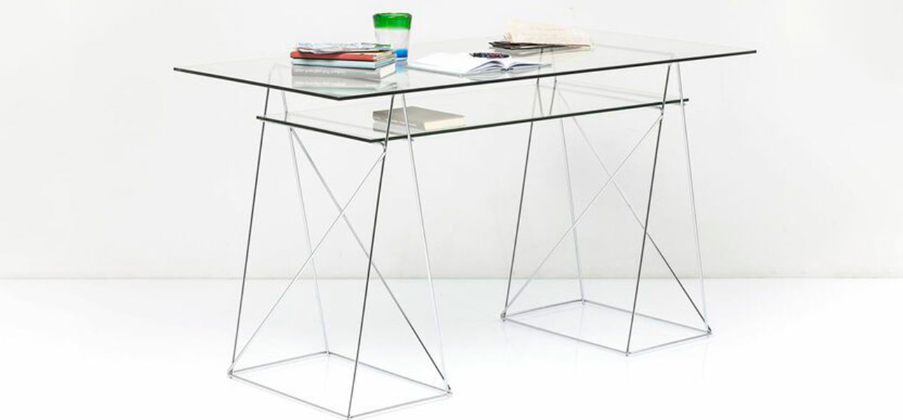 Купить рабочий стол Transparent Elias – это выбрать мебель из высокопрочного стекла и стали, что делает его устойчивым к царапинам и повреждениям.