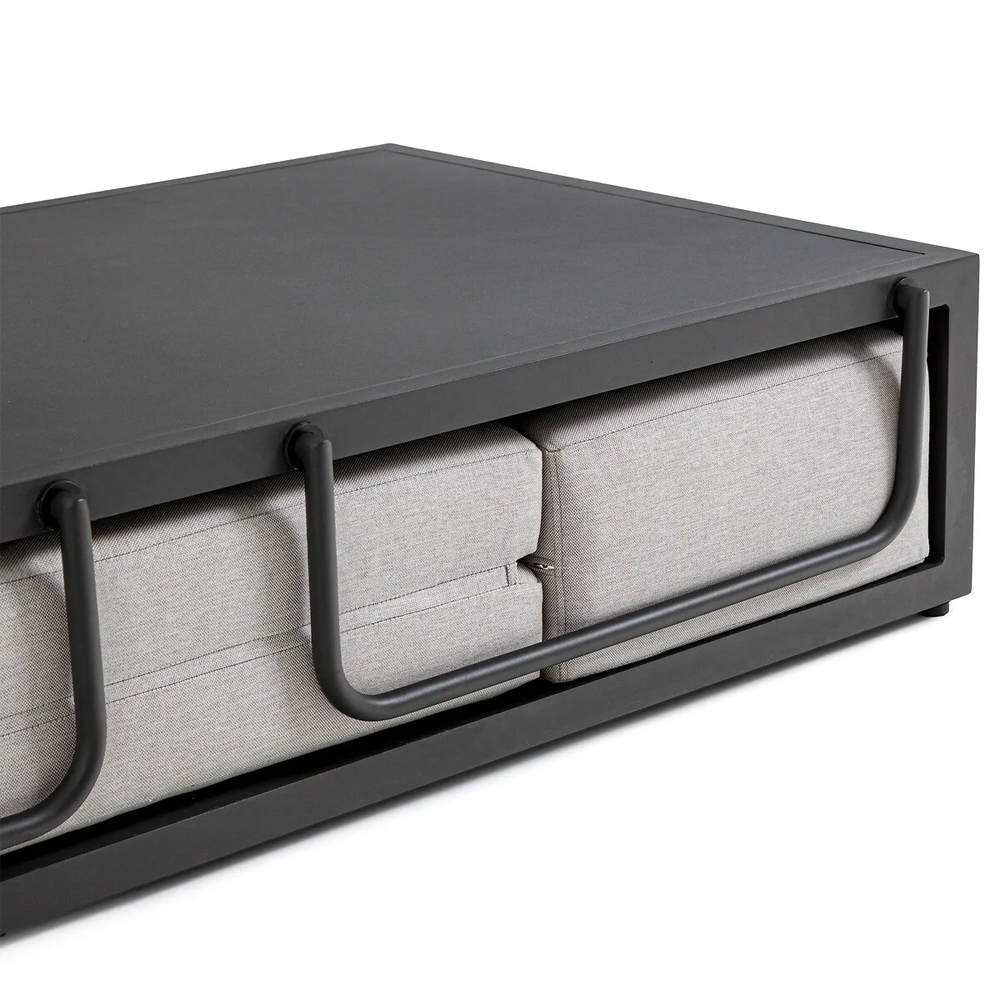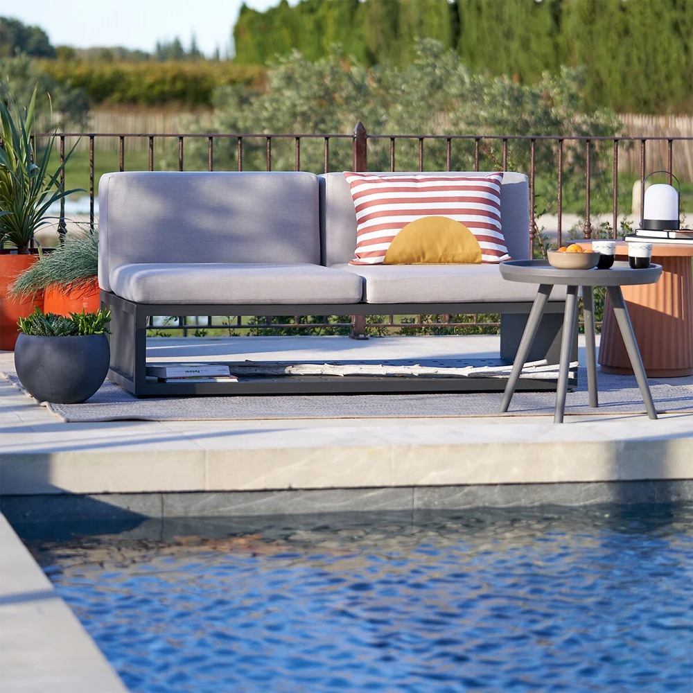 Современный и изысканный стиль, диван для сада c гарантией комфорта и долговечности. Благодаря своим водоотталкивающим подушкам со съемными чехлами, которые можно стирать в машинке, и его легкому каркасу из алюминия, он идеален для использования в течение всего лета!