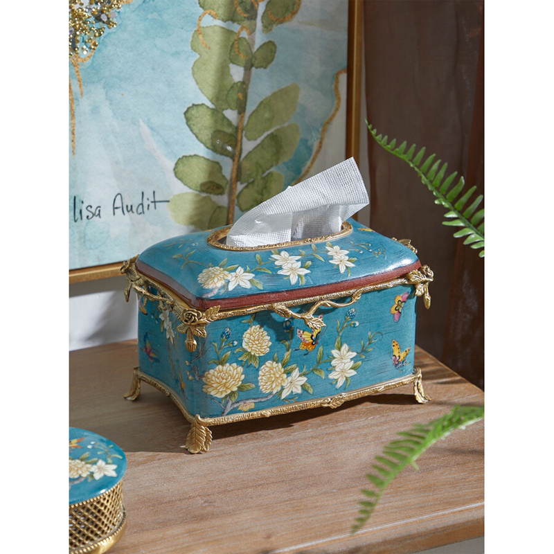 Салфетница прямоугольная голубого цвета с цветами и бабочками Blue Garden