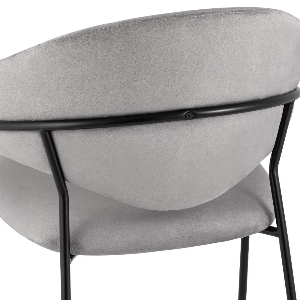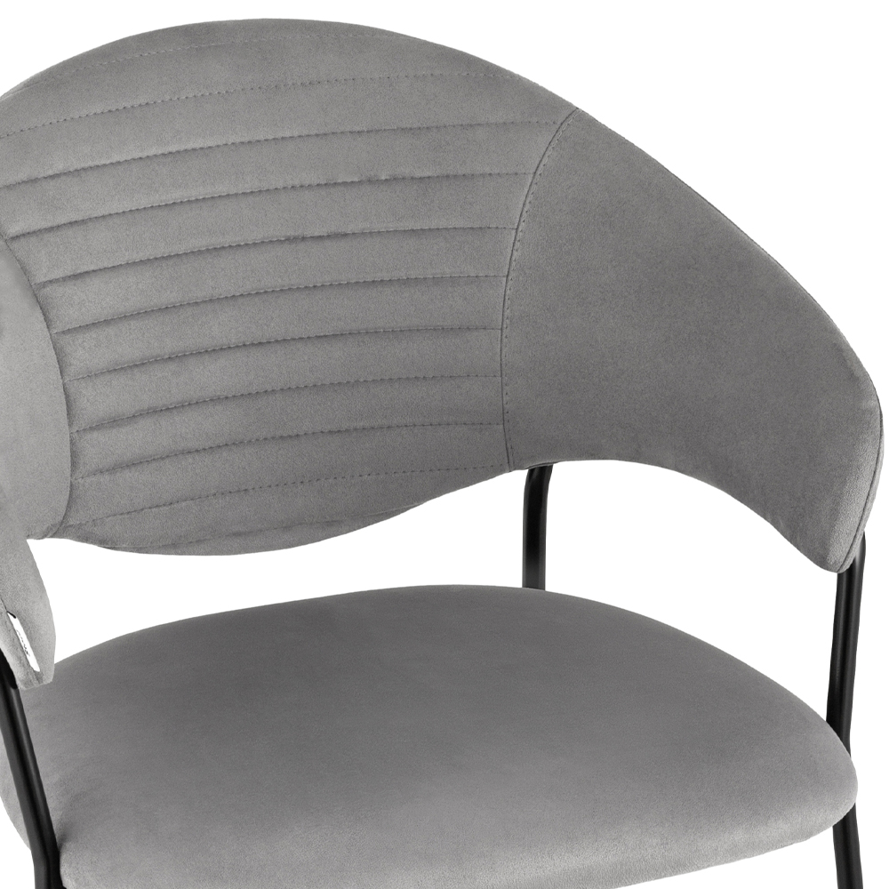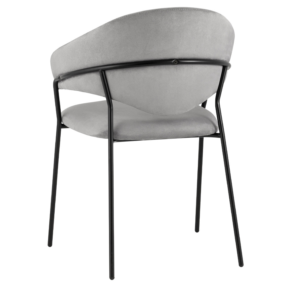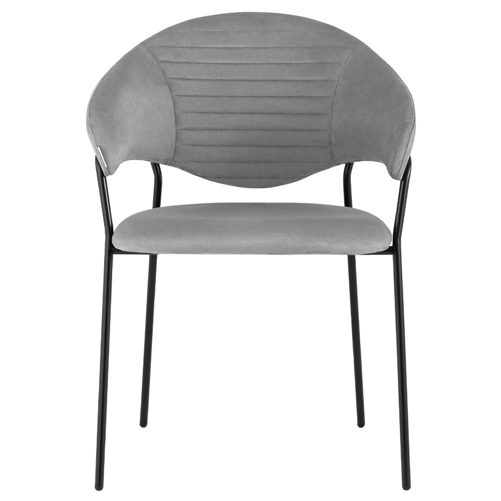 Купить серый стул с обивкой из искусственной замши Alexis – это выбрать изделие с оригинальной формой спинки, высокой поддержкой и подлокотниками.