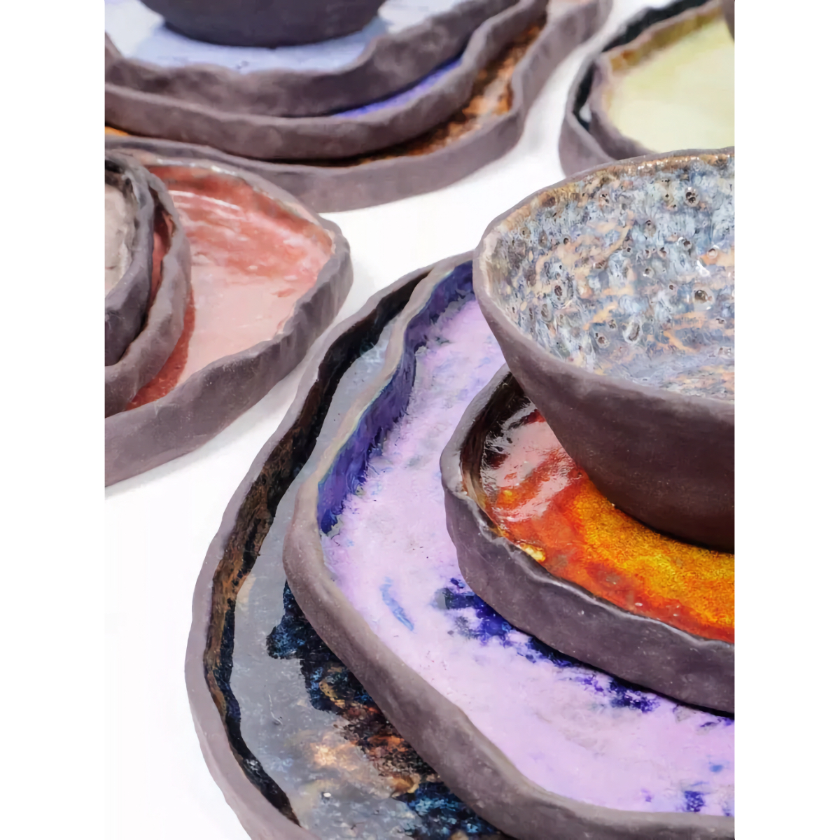 Набор из трех тарелок «SAPPHIRE» — это уникальное сочетание черной глины, печного обжига и неповторимой фактуры. Они идеально подходят для подачи небольших блюд или закусок. Благодаря своей оригинальной текстуре тарелки станут эффектным украшением любого стола. Не рекомендуется для ежедневного использования. Яркие контрастные оттенки и игра фактур — от глянцевой глазури до матовой поверхности и деликатного кракелюра — делают тарелки «SAPPHIRE» настоящим украшением. Неровная поверхность, напоминающая текстуру далёкой планеты, придаёт им необычный и привлекательный вид. Тарелки из набора «SAPPHIRE» — это стильное и оригинальное дополнение к вашей сервировке. Они отлично подойдут для особых случаев, подчеркнув индивидуальность и неповторимость вашей кухни. Храните их бережно, чтобы наслаждаться их красотой долгие годы.