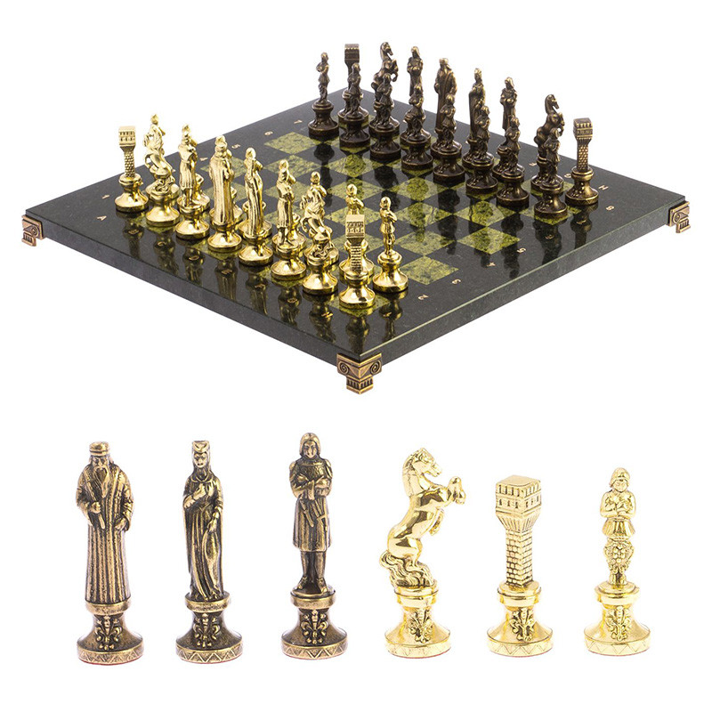 Шахматы Ренессанс из бронзы с доской из натурального камня Змеевик Decorative Thematic Chess