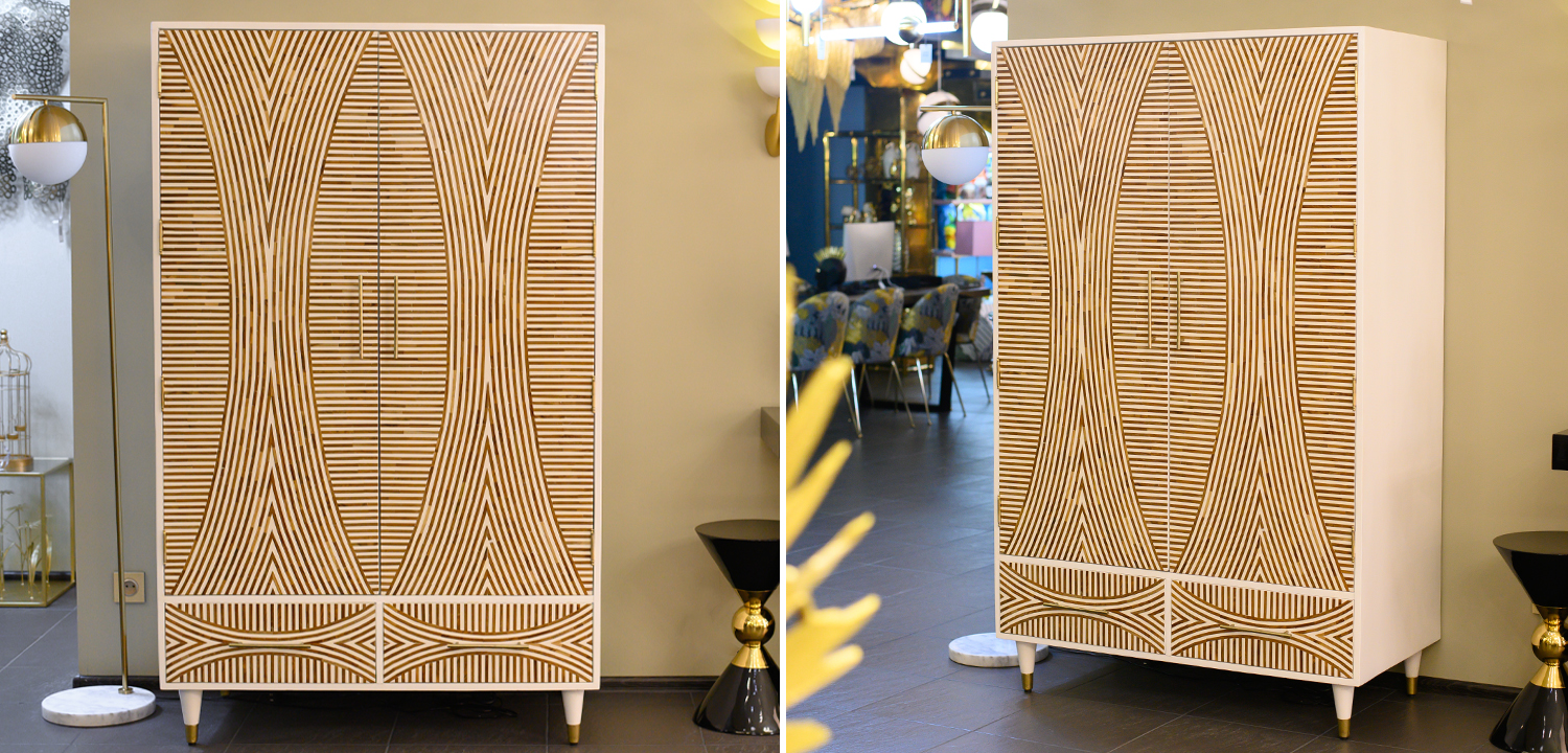 А его особенностью является функциональность. Благодаря продуманной конструкции, вы сможете купить шкаф Arc Bone Inlay, где будет удобно хранить множество вещей, сохраняя при этом порядок и уют в комнате. Кроме того, шкаф оснащен удобными ящиками снизу для хранения мелких предметов.