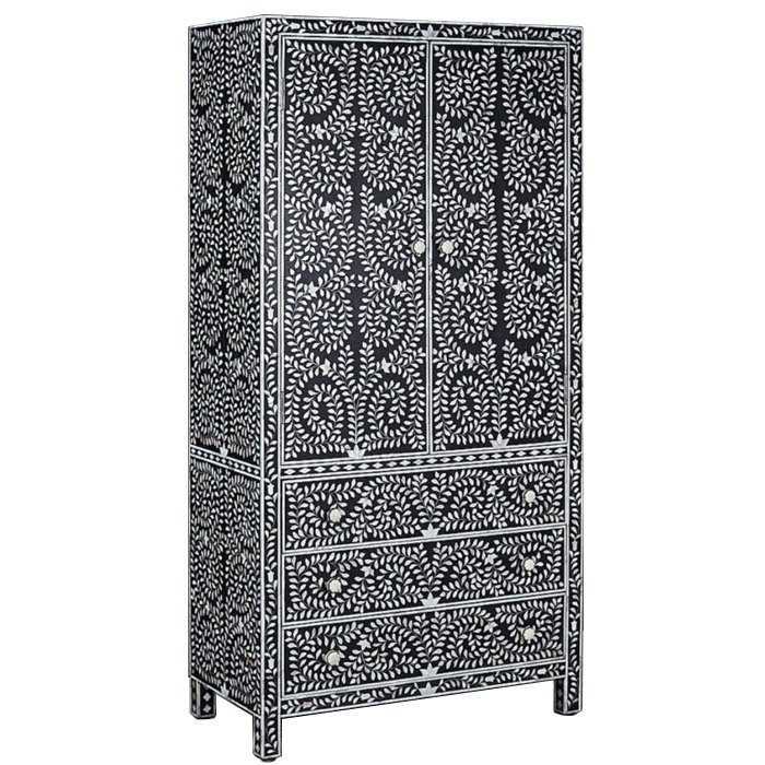 Кость верблюда, использованная для создания узора, придает шкафу особую ценность и шарм. Тонкая работа мастера создает иллюзию объема, делая узор живым и реалистичным.