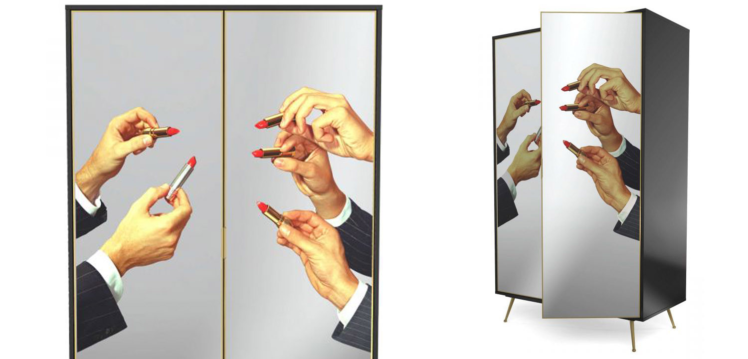 Отличительной особенностью шкафа является его дизайн, выполненный в духе китча и поп-арта. И все благодаря изображению ярких и сочных губных помад на его дверцах.