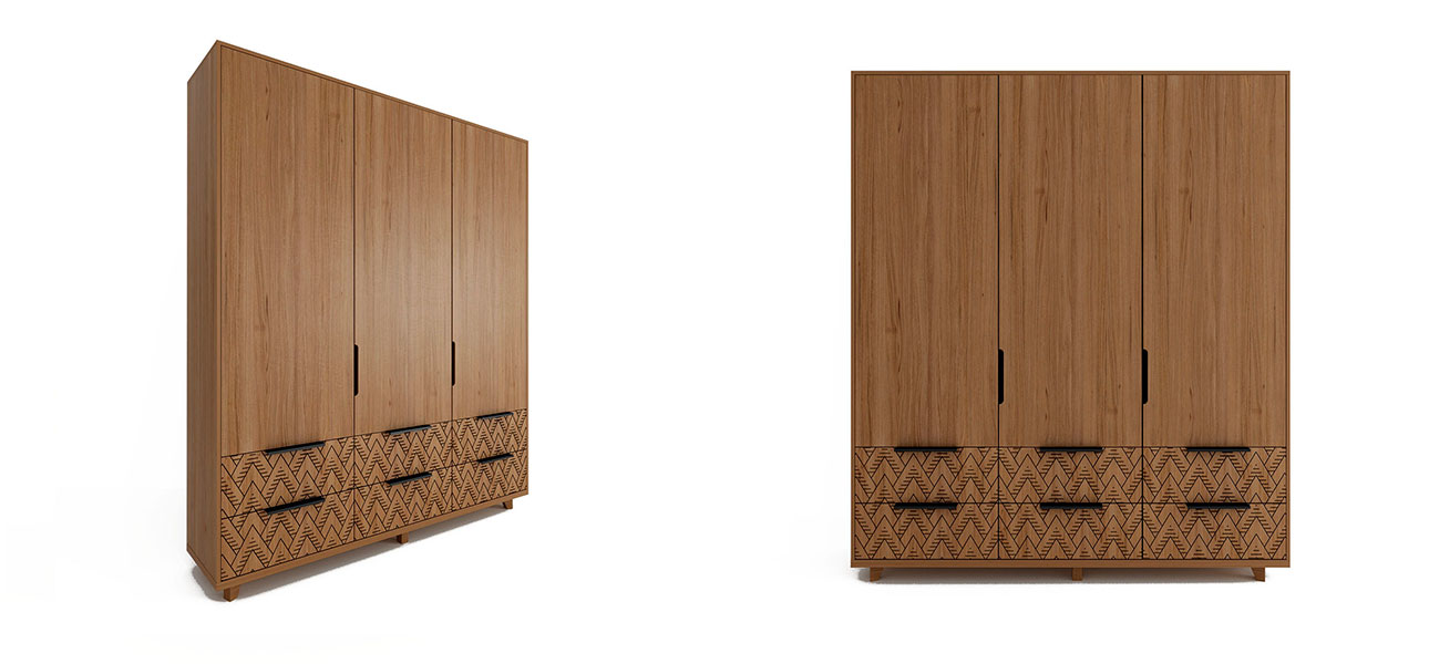 Если вы решили купить шкаф трехстворчатый орнамент треугольники Brian, то он с легкостью станет верным спутником, хранителем ваших сокровищ и неделимой частью домашнего уютного пространства.