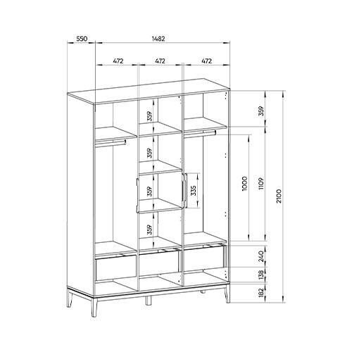 Шкаф трехстворчатый с фасадом из шпона дуба Fjord
