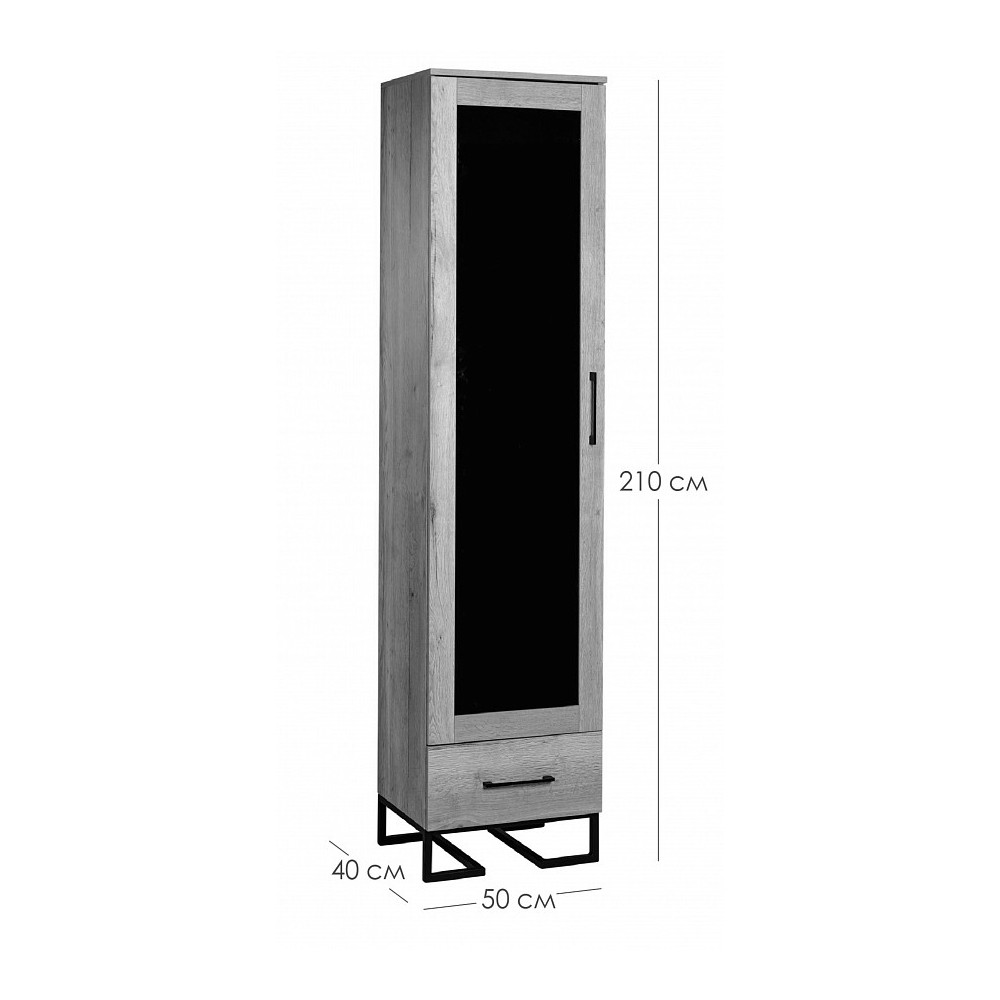 Шкаф-витрина в стиле лофт с чёрной стеклянной дверью Urban Style Space 2