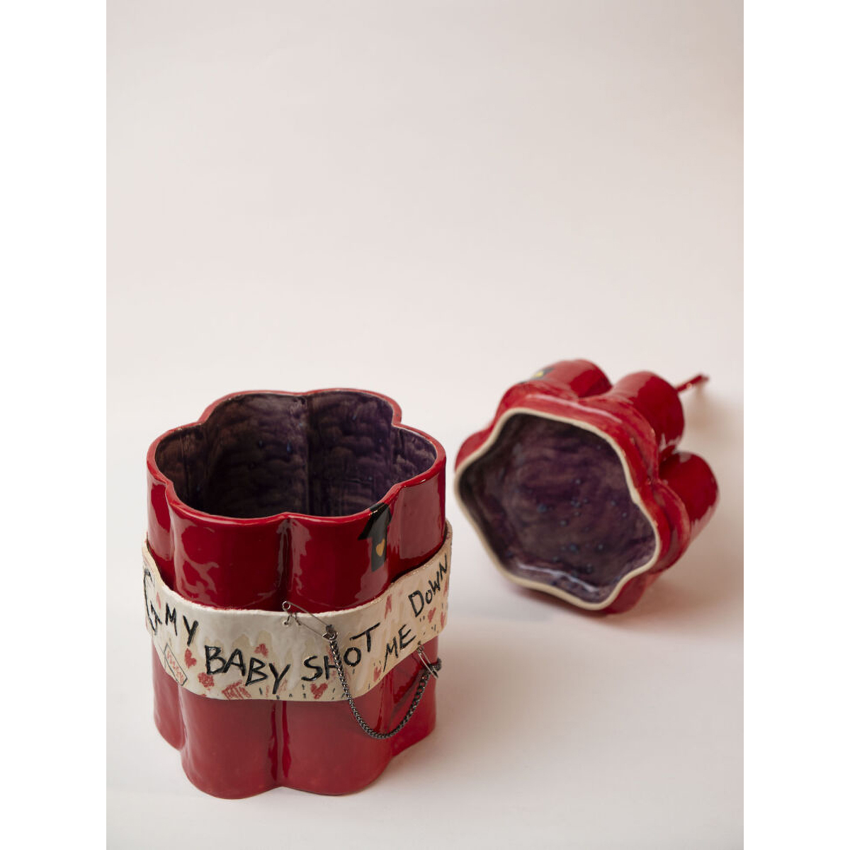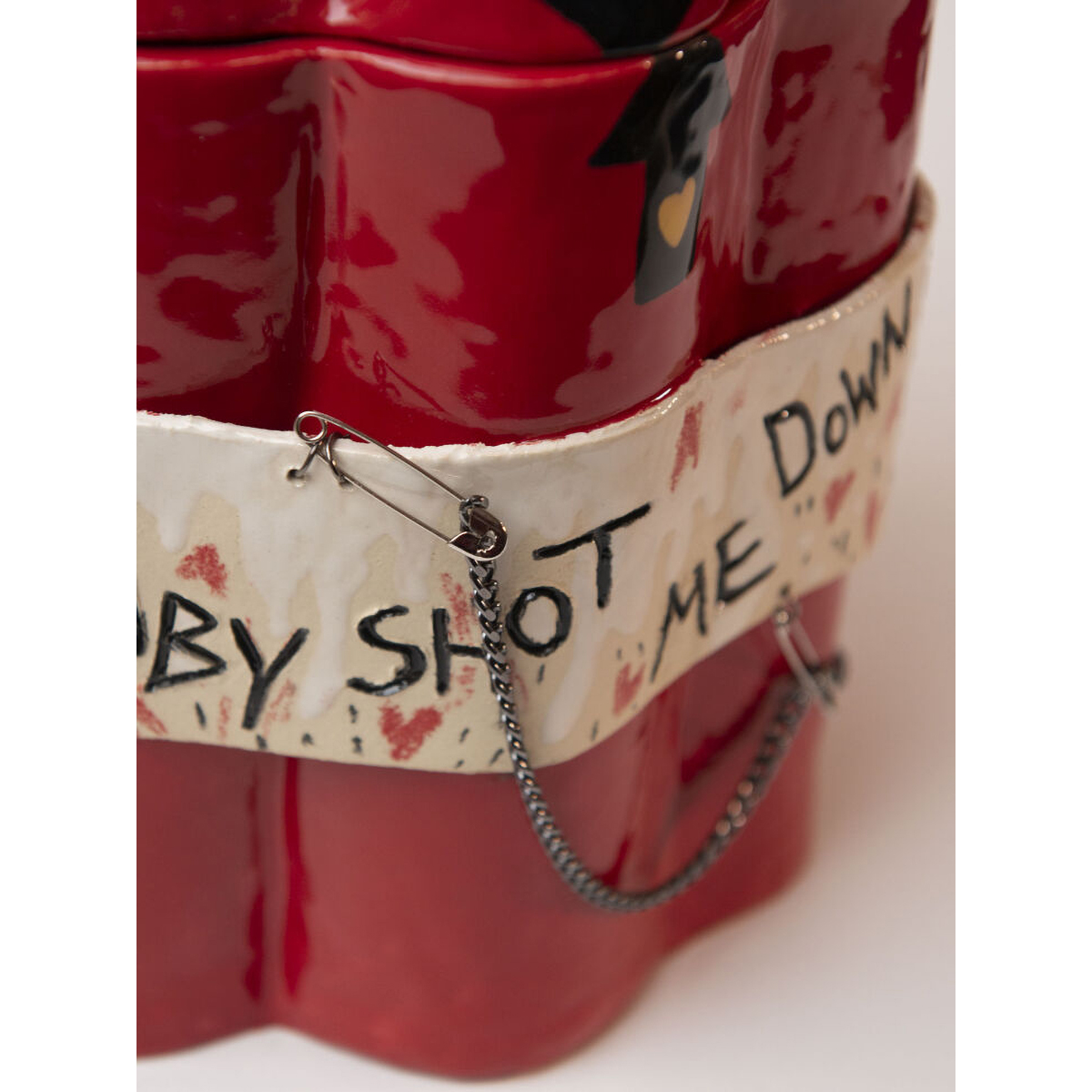 Большая скульптура, имеет функционал - крышка открывается и закрывается обратно по совмещению стрелок. Вдохновлена знаменитой песней Bang Bang (My Baby Shot Me Down) by Nancy Sinatra.