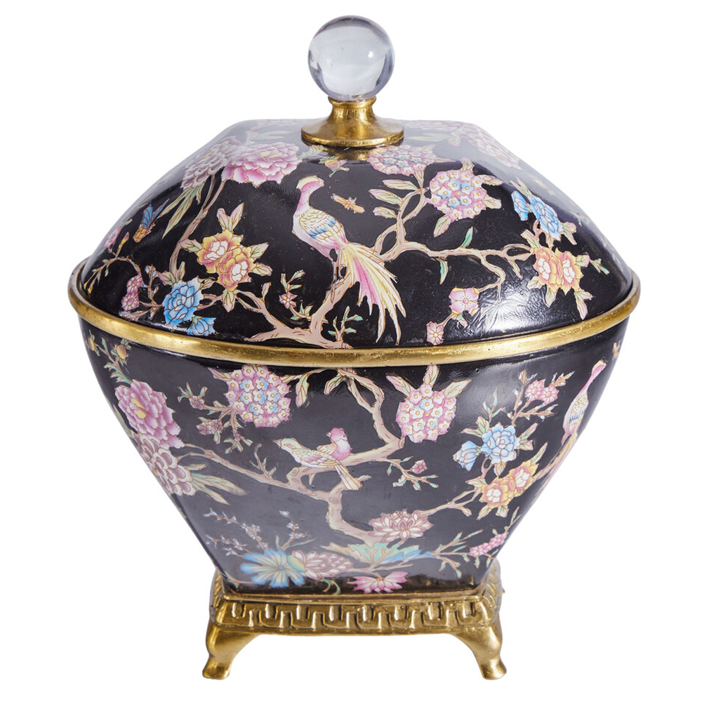 Шкатулка черного цвета с цветочной росписью Eden Garden