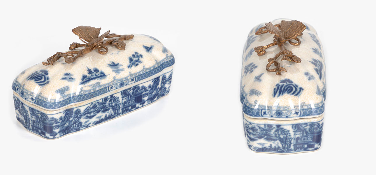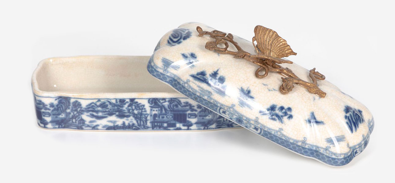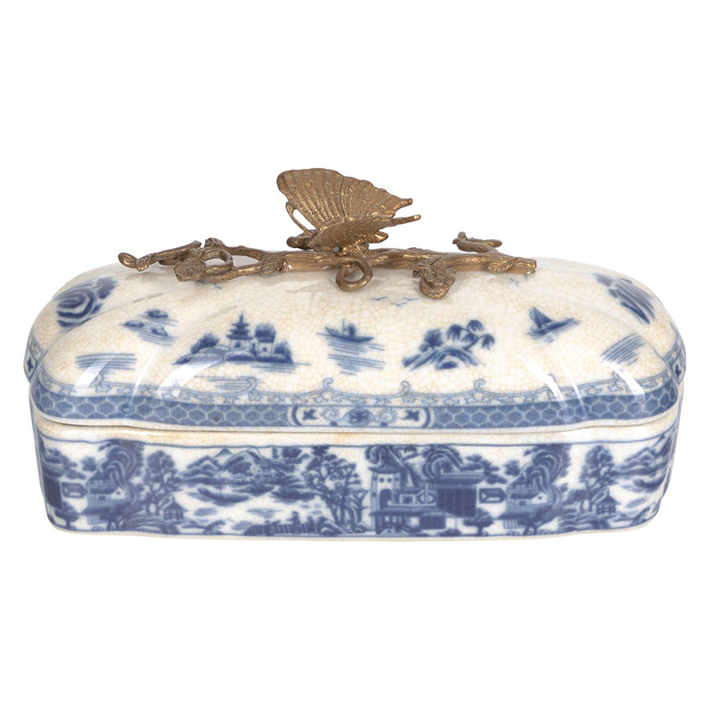 Шкатулка фарфоровая с синим орнаментом Bronze Butterfly