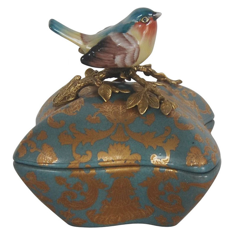 Шкатулка фарфоровая синяя с золотым орнаментом Forest Waltz