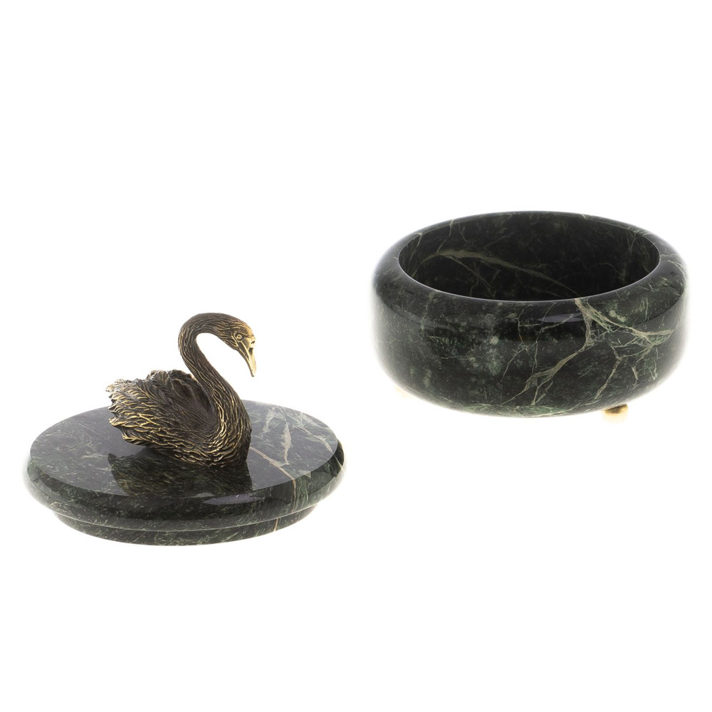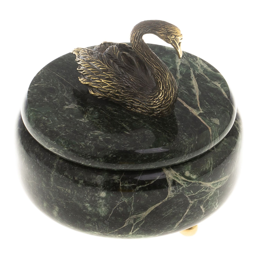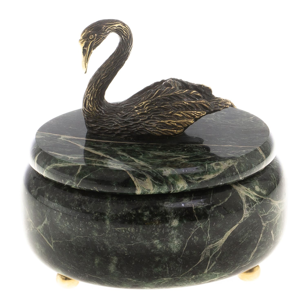 Шкатулка из натурального камня змеевик с фигуркой лебедя Stone Casket